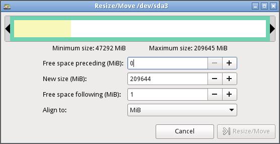 5. That will launch the Resize/Move /dev/sd_ dialog box.