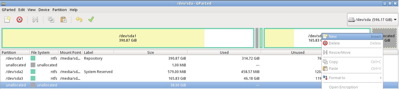 We will partition an existing disk and create a new partition that we can use to install a Linux distribution. We will not be formatting the partition. Unless you are an advanced Linux user, stick to Resizing a Partition.