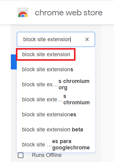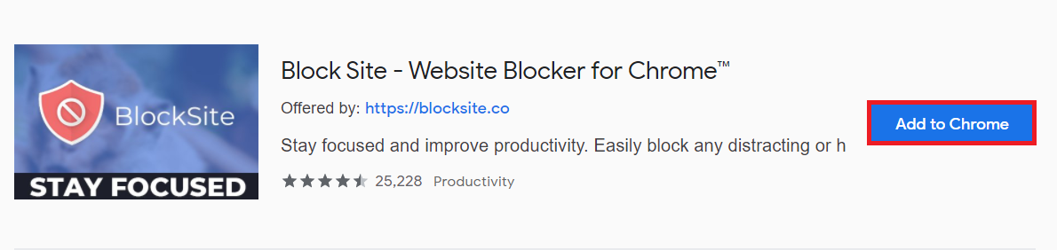 Now scroll down to the Block Site- Website Blocker for Chrome and then click on the Add to Chrome button located beside it as highlighted in the following image: