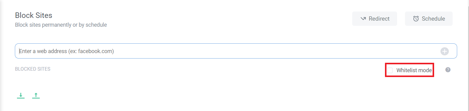 After doing this, you will be automatically redirected to the Block Site- Website Blocker for Chrome Settings page from where you can add any websites of your choice to the restricted list. Here, there is also a Whitelist Mode which can be enabled simply by checking the checkbox before it as highlighted in the following image. By adding websites to the list using the Whitelist Mode, you can allow only the websites mentioned in that list i.e. rest of all the websites will be blocked by default.