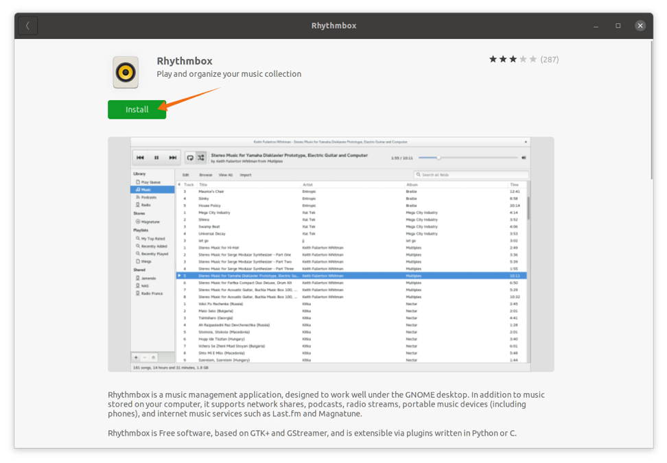 Installing Rhythmbox on Ubuntu 20.04 (LTS) and 20.10 using Ubuntu’s Software Center