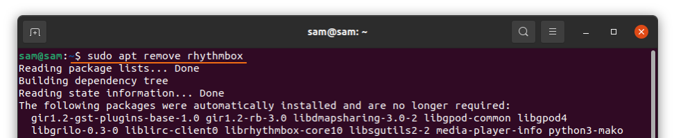 How to uninstall Rhythmbox from Ubuntu 20.04 (LTS) and 20.10