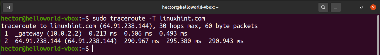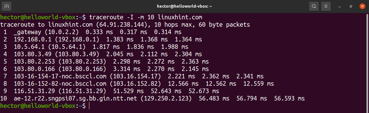 There are multiple methods that you can use to probe the remote address. To specify traceroute to use ICMP echo, use the “-I” flag: