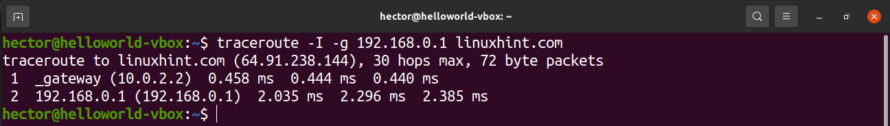 To route packets through a certain gateway, use the “-g” option, followed by the gateway: