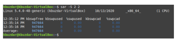 Running this command will show you the swap memory statistics according to the values of TimeInterval and NoOfTimes, and average values are also provided.