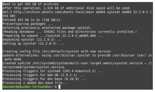 It will take a few seconds to install the sysstat package. Then, you will see the messages shown below on your terminal.
