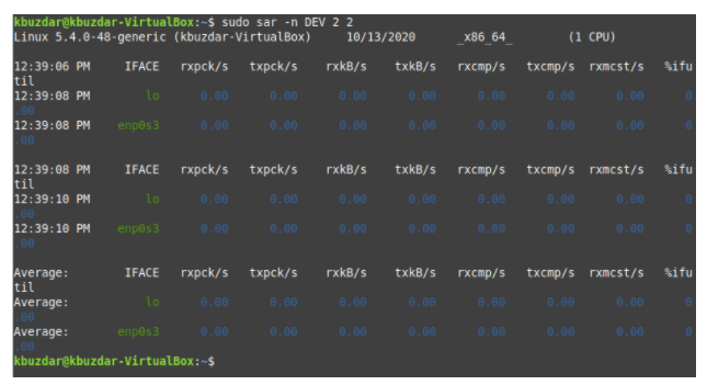 Running this command will show you the network statistics according to the values of TimeInterval and NoOfTimes, and average values are also provided.