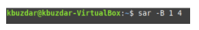 Paging is used in operating systems for memory management. It handles how data are stored and retrieved on the hard disk and how they are brought to and used in the main memory. To check all paging-related statistics, we must run the following command in our terminal: sar –B TimeInterval NoOfTimes. The SAR command can be used with the -B flag to check the paging-related statistics. Here, TimeInterval specifies the time in seconds after which you want to check your paging statistics, and NoOfTimes specifies how many times you want to check the paging statistics. For this example, we want to check the paging statistics every second until we have checked the statistics four times.