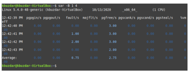 Running this command will show you the paging statistics according to the values of TimeInterval and NoOfTimes, and average values are also provided.