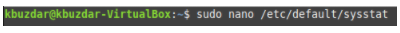Open the sysstat file in a text editor by running the terminal command sudo nano /etc/default/sysstat. However, we used the nano editor (Linux’s default editor) to open this file.