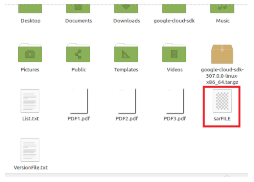 To verify if such a file has been created, you can visit your Home directory by clicking on the File Manager icon. Here, you will find sarFILE, as highlighted in the image shown below.