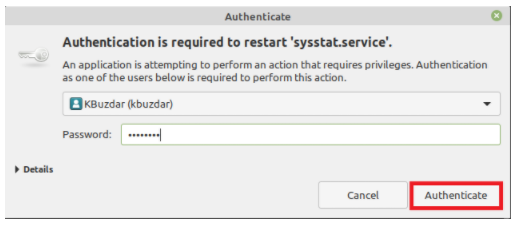 When you will run this command, you will be prompted for authentication; enter your account’s password and then click the Authenticate button.