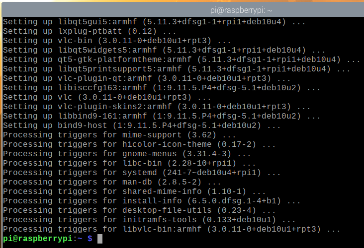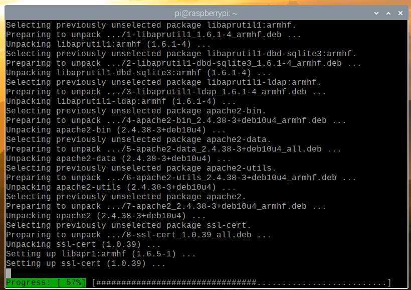 Once the packages are downloaded, the APT package manager will install them one by one. It may take a while to complete.