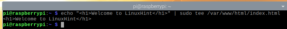 Once the Apache webserver is installed, create a simple index page with the following command:
