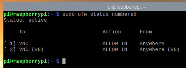 If you’re connected to your Raspberry Pi via SSH or VNC (like me), you must allow access to the OpenSSH and VNC app profiles. Otherwise, the next time you boot your Raspberry Pi, you won’t be able to access it remotely as the firewall will block all ports, including the SSH and VNC ports. So, this is very important.