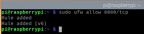 As you can see, the TCP port 8080 is allowed access through the firewall.