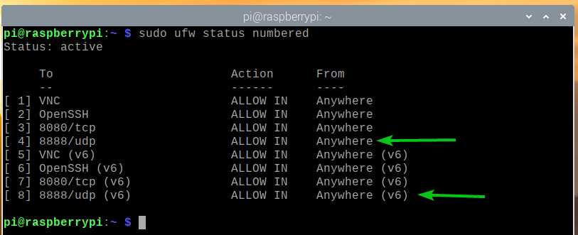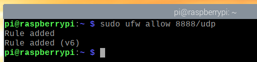 As you can see, the UDP port 8888 is allowed access through the firewall.
