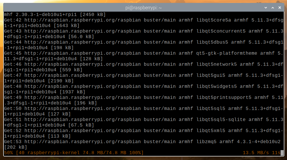 The APT package manager will download all the packages from the internet and install them one by one. It may take a while to complete.
