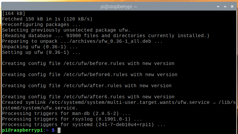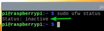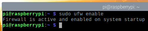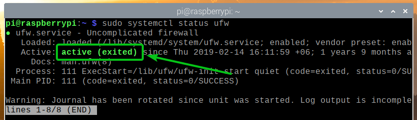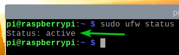 Once your Raspberry Pi boots, the ufw systemd service should be active, as you can see in the screenshot below.
