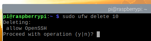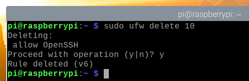 As you can see, the UFW rule is removed, and the rules are reordered (The UFW rule that was in position 11 is now in position 10).