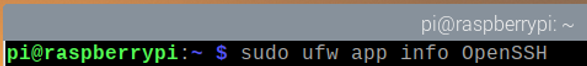 In the same way, allow access to the ports defined in the OpenSSH app profile with the following command: