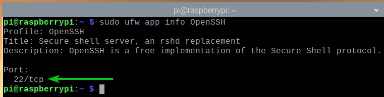 As you can see, TCP port 22 is defined in the app profile OpenSSH.