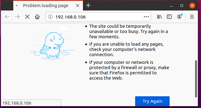 You won’t be able to access the Apache webserver running on your Raspberry Pi from the computer with the IP address 192.168.0.109 anymore, as you can see in the screenshot below.