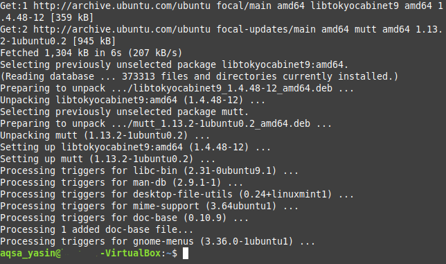 Once the “mutt” package is installed on your Linux Mint 20 system, along with all the required dependencies, you can run further commands, as shown in the following image: