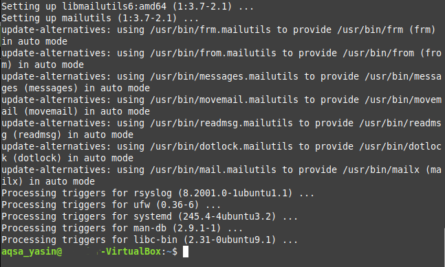 Once the “mailutils” package is installed on your Linux Mint 20 system, along with all the required dependencies, you can run further commands, as shown in the image below: