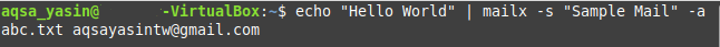 The “mailx” command is also included in the “mailutils” package and, since you have probably already installed this package in Method 2, you do not have to install the package again. Instead, you can use the “mailx” command to send an email with attachments in the manner shown below: