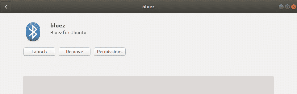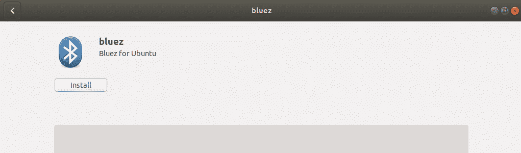 In the Software Center, type bluez in the search bar and hit Enter. When the search result appears, select the Bluez application. Start the installation by clicking the Install button.