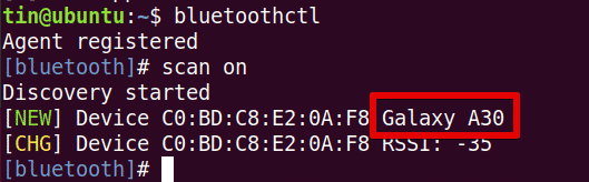 If the system discovers any Bluetooth device, it will list it in the Terminal. Note down the MAC address of the device you want to pair with.