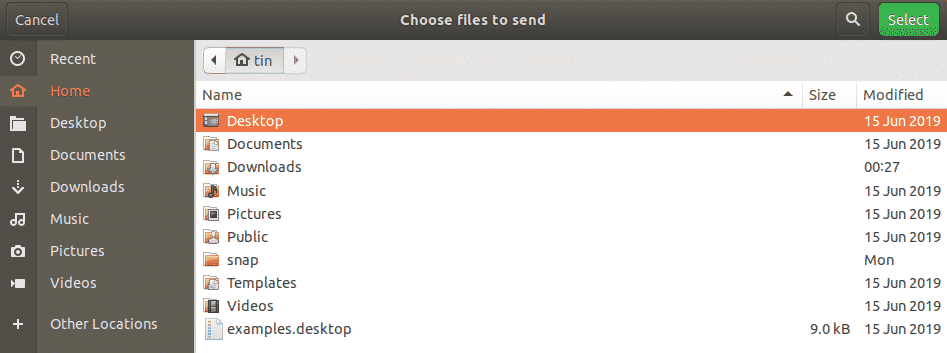 Now you can start sharing files from your system to the connected Bluetooth device. To share files to the connected Bluetooth device, Select it to open the following dialog.