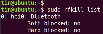 The soft block status in the output shows whether the Bluetooth is on or off. If the status is yes, Bluetooth is on, otherwise, it is off. If it is turned off, use the following command to turn it on: