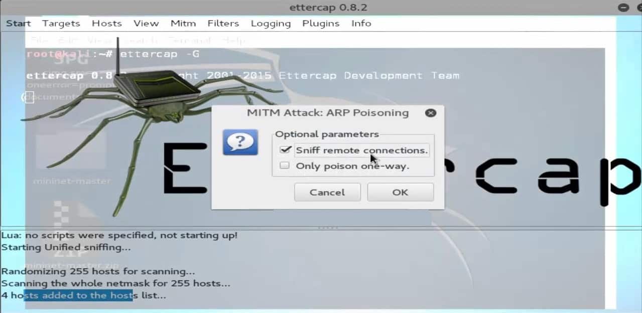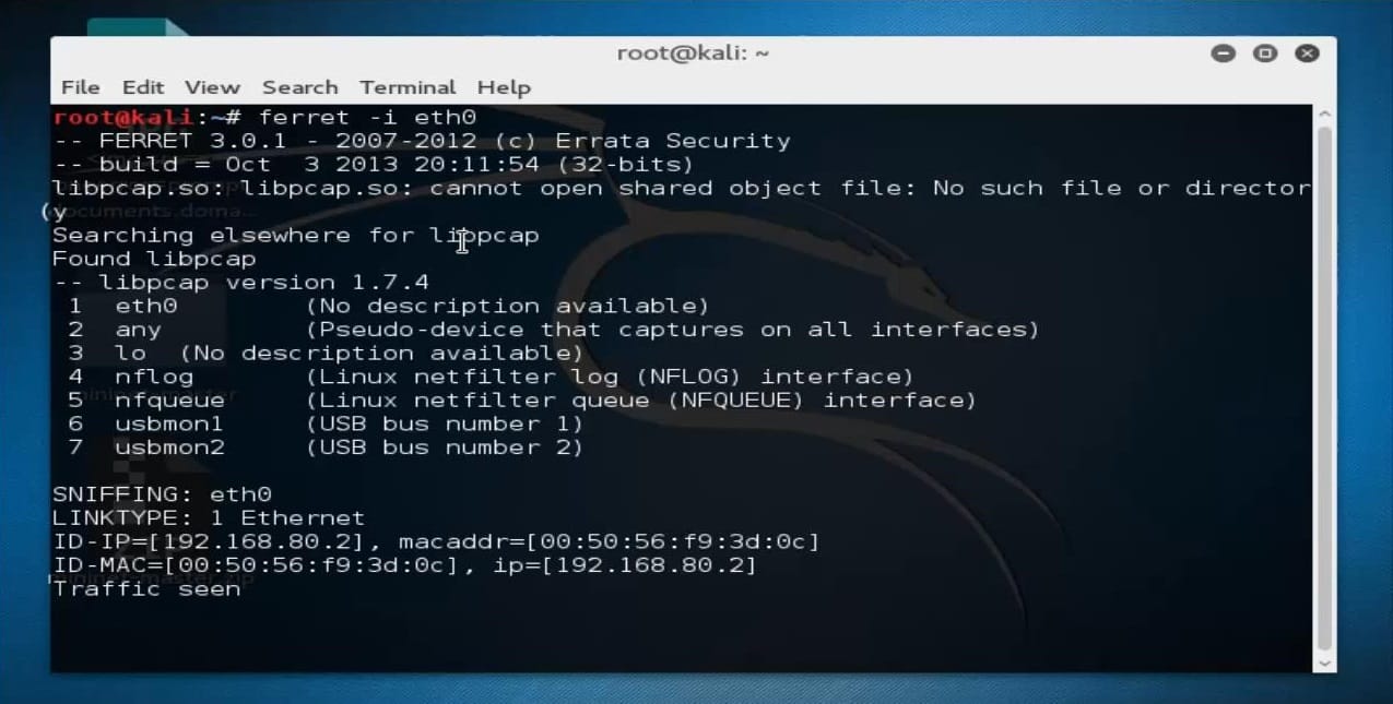 Now that the ettercap has been primed for the attack, leave it running in the background and proceed to launch the Ferret tool.