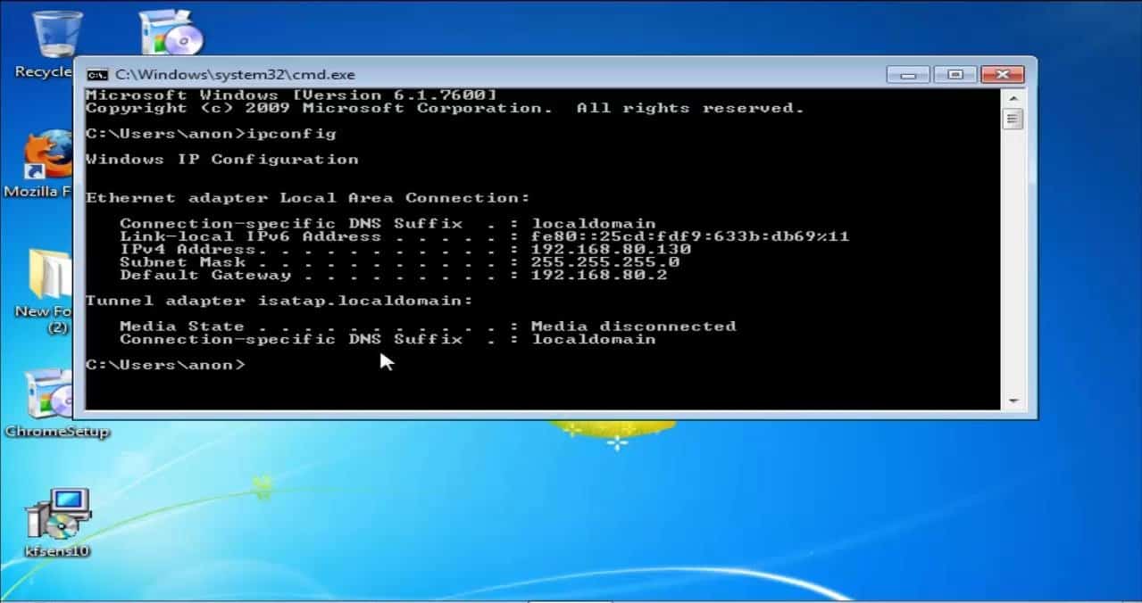 Here, we have designated a local machine (with Windows 7 OS) on our network as our target, and its IP is also displayed in the results that we are shown. Check to see if your target machine’s IP address is detected.