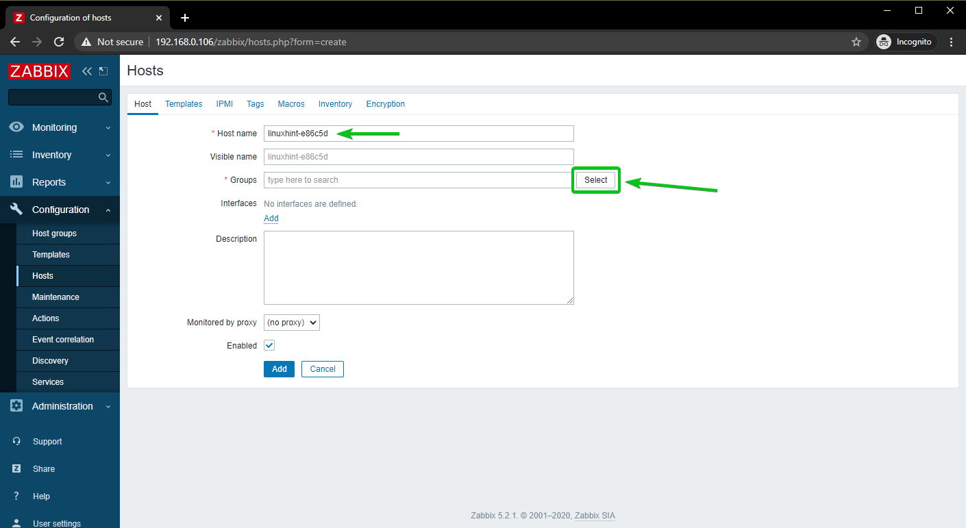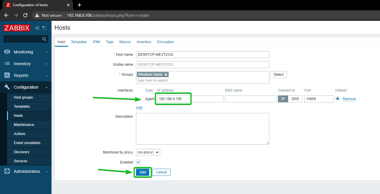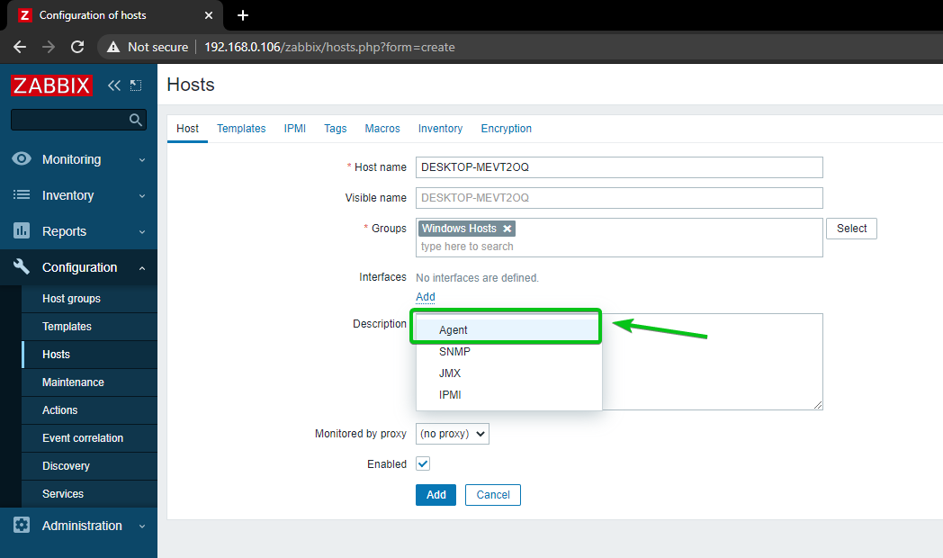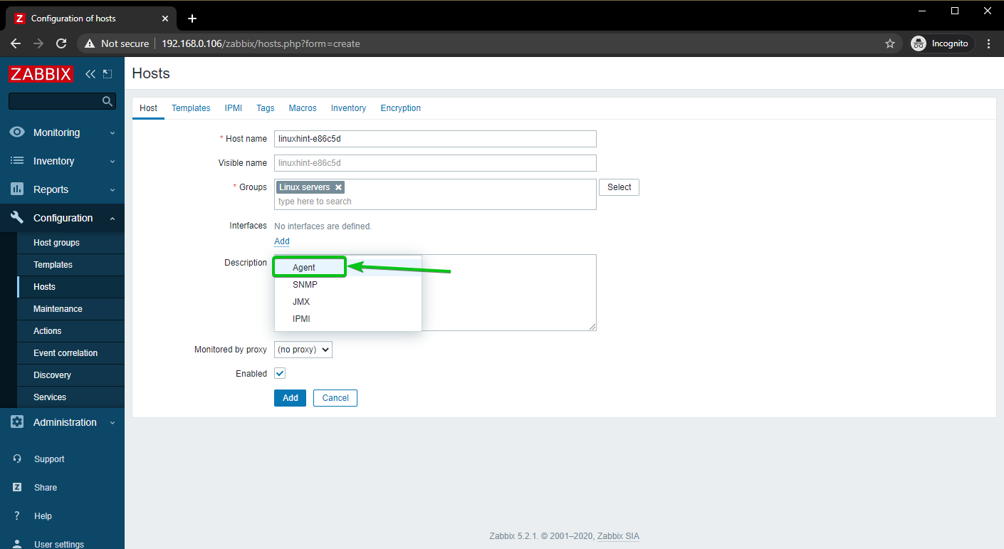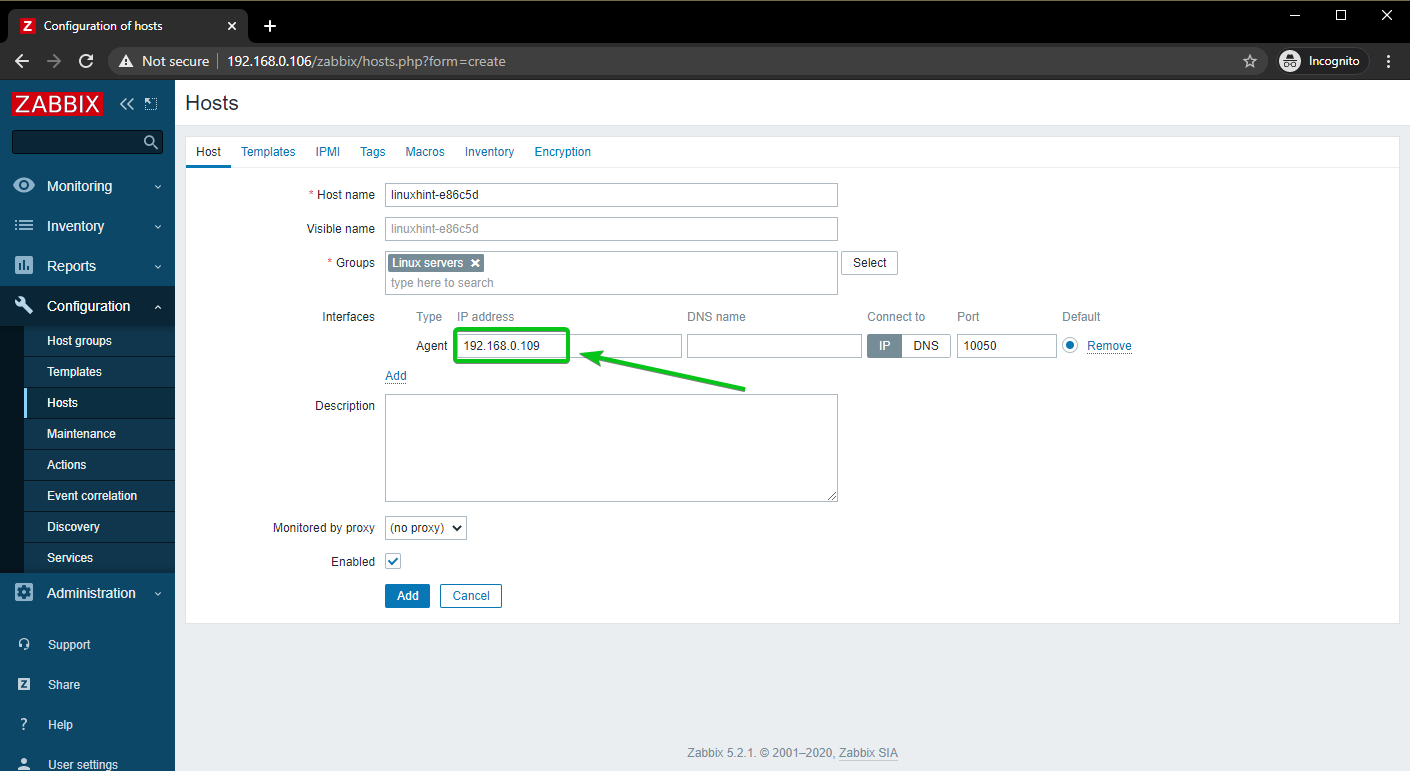 Type in the IP address of the computer/server you’re trying to add to Zabbix.