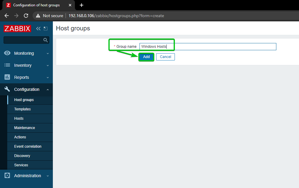Just to keep things organized, let’s create a new host group for Windows hosts.