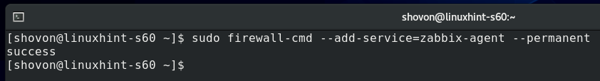 Run the following command to configure the firewall to allow access to the Zabbix Agent port 10050:
