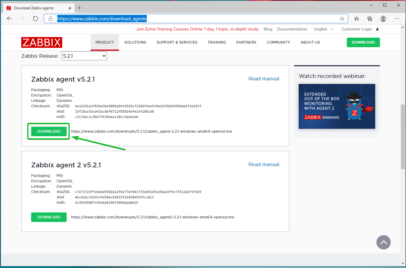 Once the page loads, select the Windows MSI package as marked in the screenshot below.