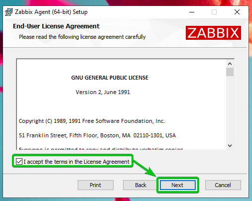 Check the I accept the terms in the License Agreement checkbox and click on Next.