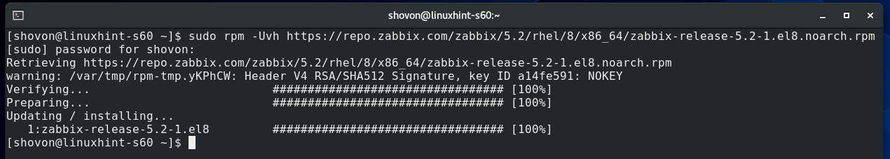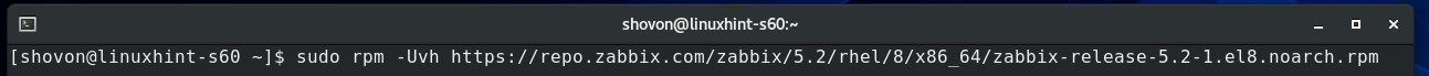To add the Zabbix package repository to your CentOS/RHEL 8, run the following command: