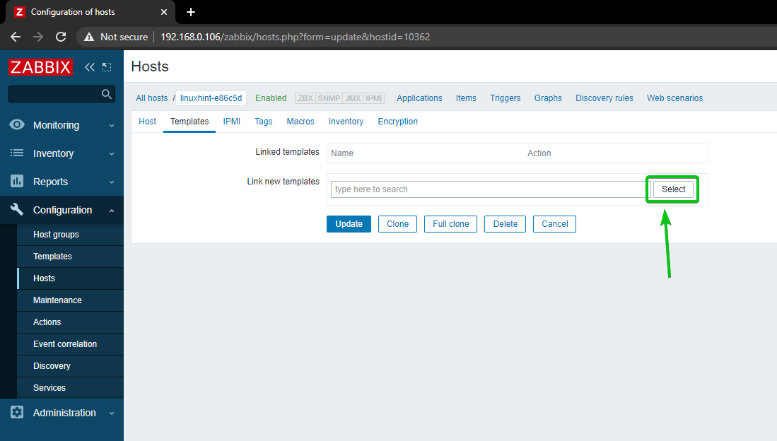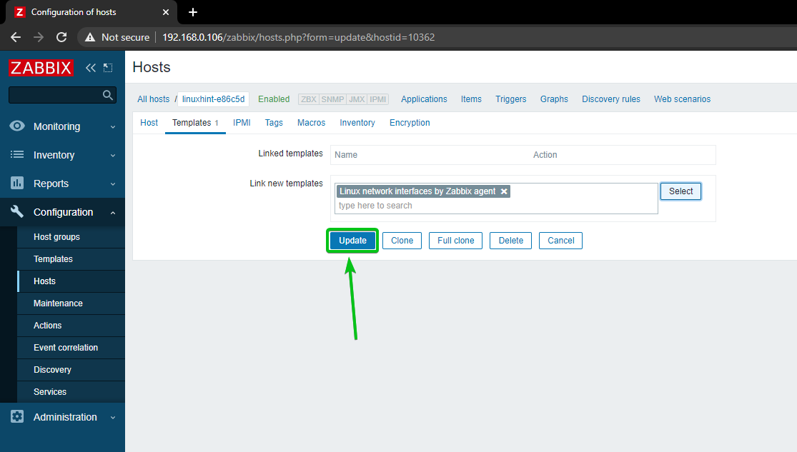 First, navigate to Configuration > Hosts and click on the Linux Host that you want to monitor network usage.