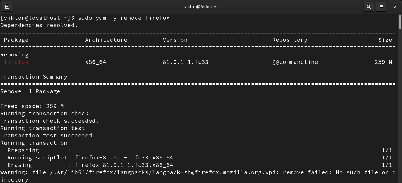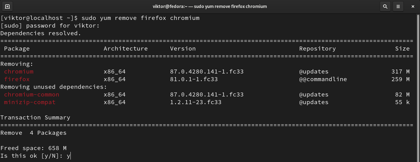 Same as installing multiple packages, YUM can also remove multiple packages.