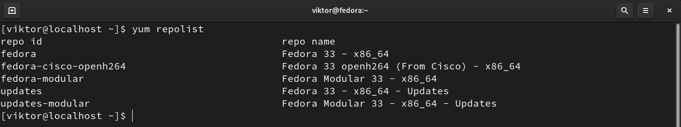 YUM repositories are the primary sources for downloading and installing packages. Fedora comes with the Fedora repos by default. However, it’s possible to add/remove additional repositories.