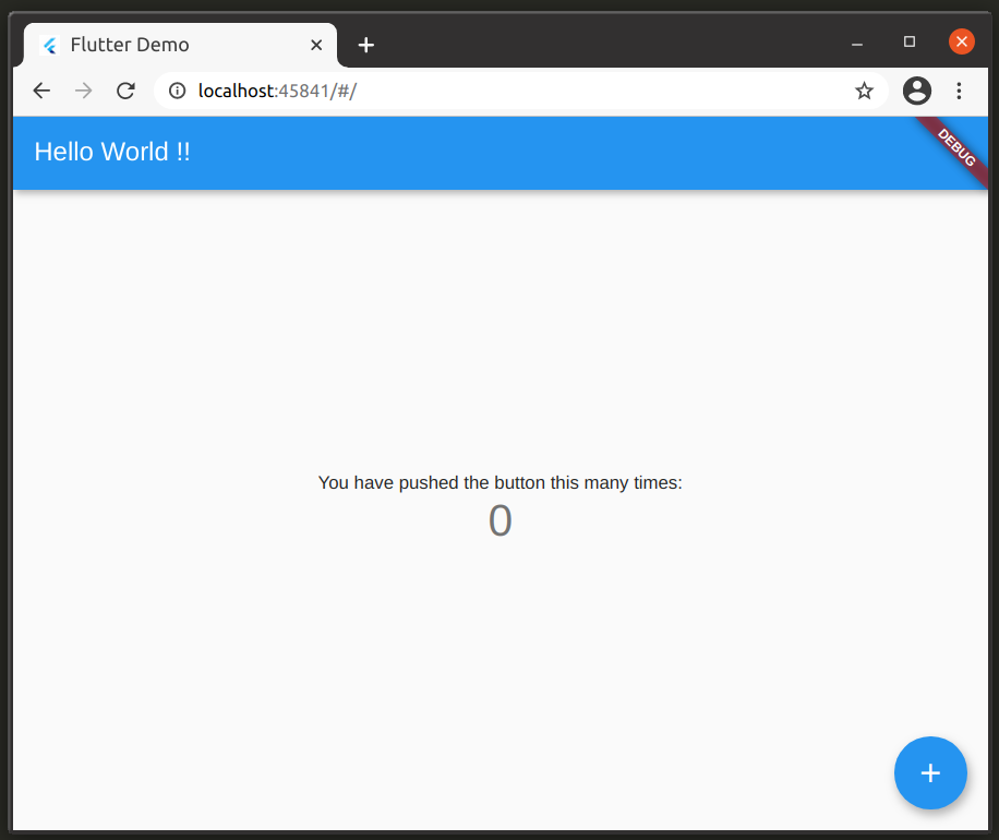 Flutter supports “hot reload”, allowing you to quickly refresh your app without relaunching it to see the changes. Try changing the application title from “Flutter Demo Home Page” to “Hello World !!” in the “main.dart” file. Once done, press <r> key in terminal to refresh the app state without relaunching it.