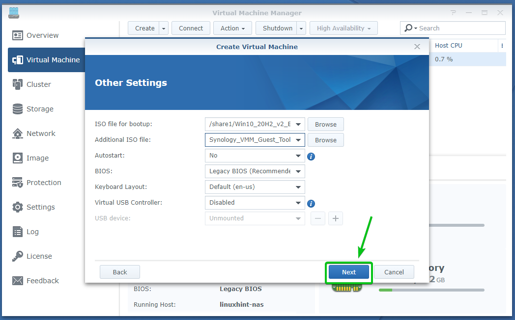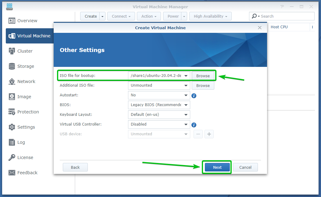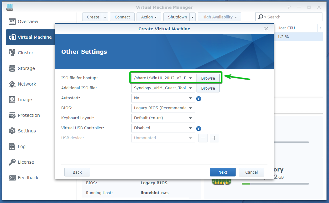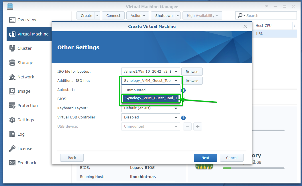 First, you need to copy the ISO image files (of the operating systems you want to install on your Synology NAS virtual machines) to the Synology NAS.