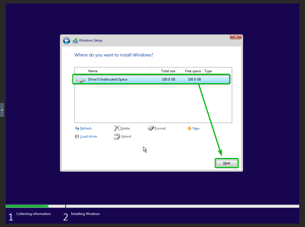 Type in the amount of disk space you want to allocate to the virtual machine and click on Next.