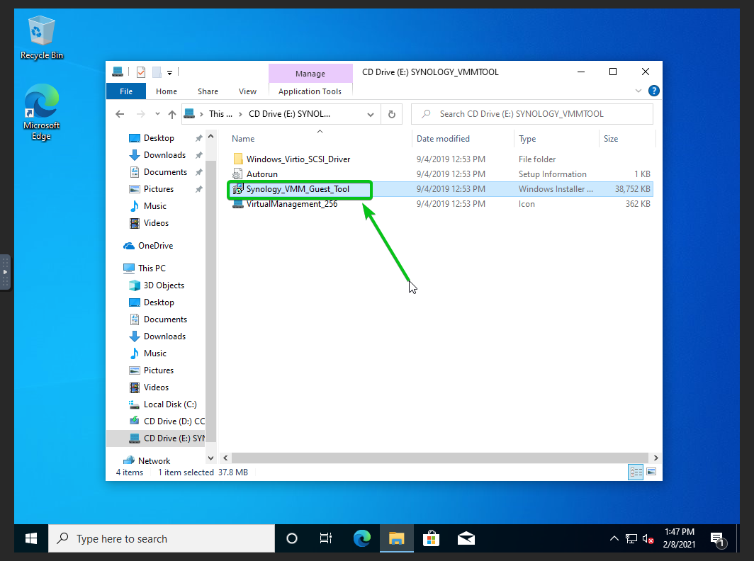 Before you create a Windows 10 virtual machine, you need to download the Synology Guest Tool ISO image.