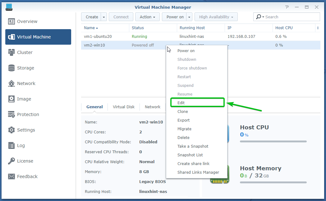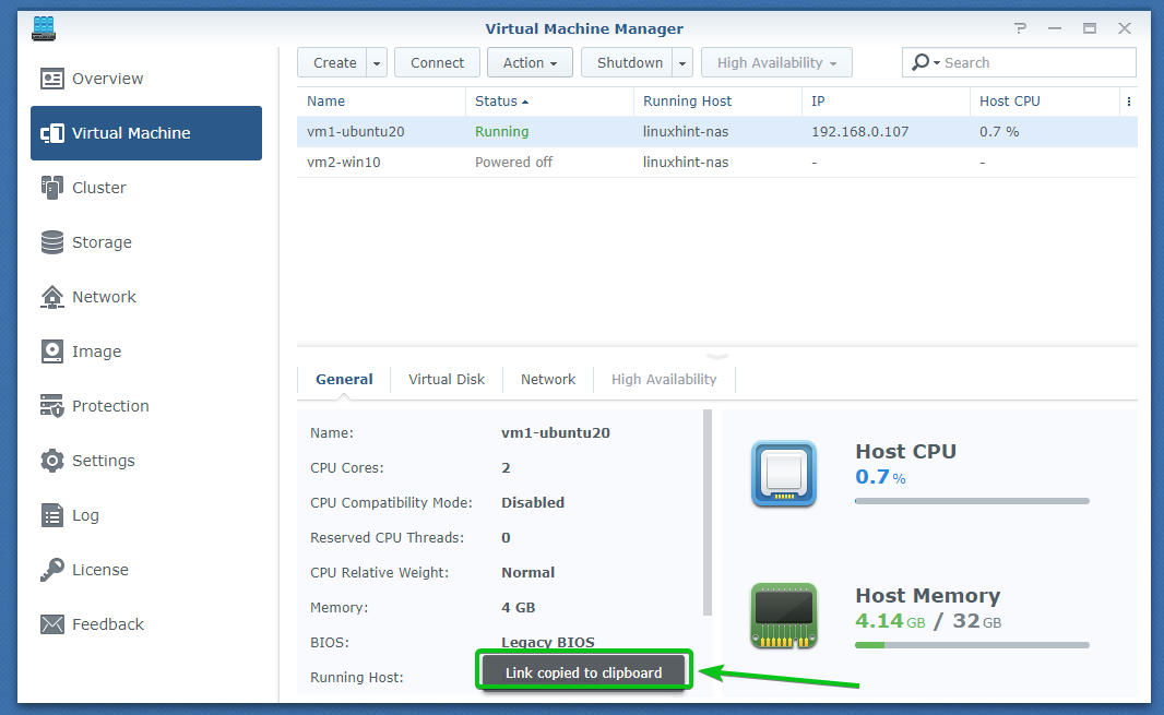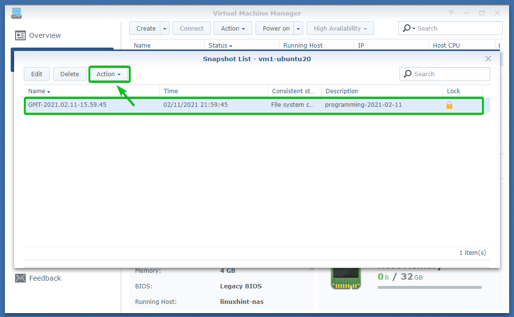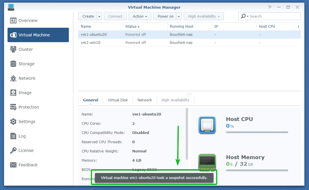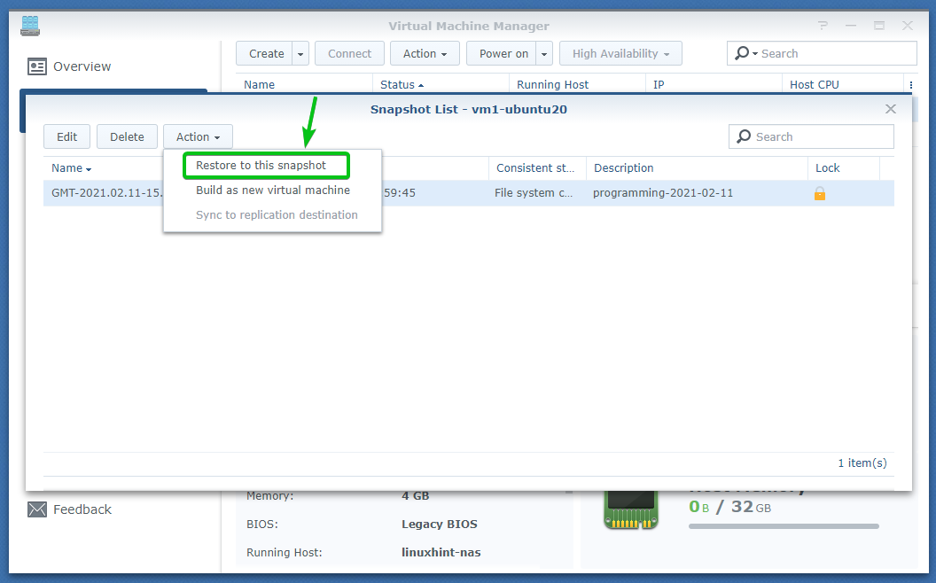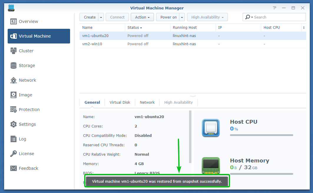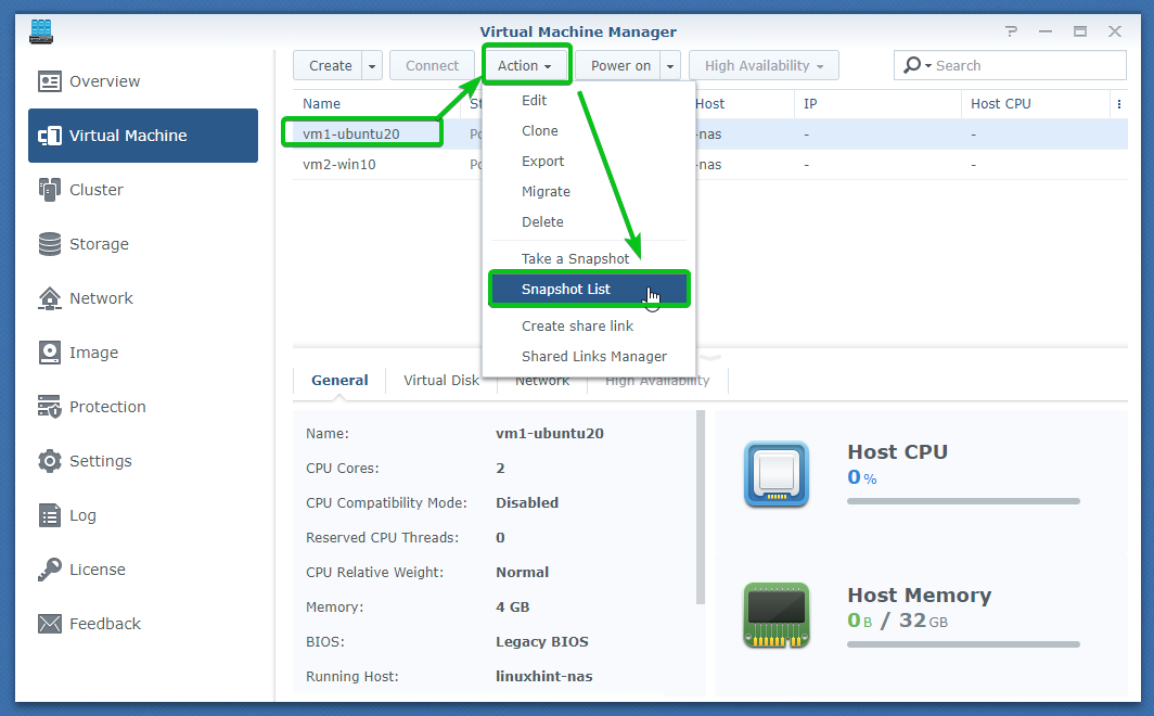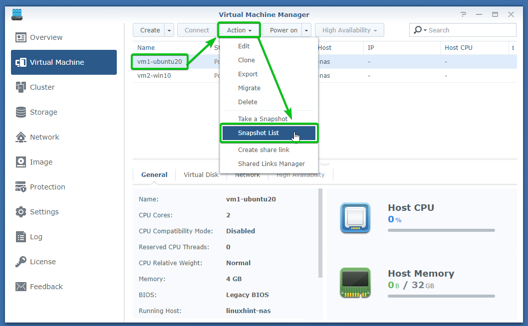 In this article, I have shown you how to install and set up the Virtual Machine Manager app on your Synology NAS. I have also shown you how to create and manage virtual machines, take snapshots of it, restore it from snapshots, as well as share, cloneexport, and import it on your Synology NAS using the Virtual Machine Manager app.